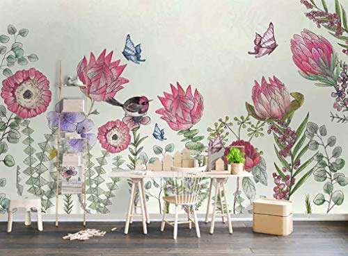 Amazon Com Murwall Floral Wallpaper Pink Flower Wall Mural Floral Drawing Wall Art Classical Home Decor Kitchen Wall Decor Living Room Bedroom Handmade Products